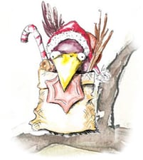 ein Vogel im roten Gewand, gütig und mit Geschenken allerhand,