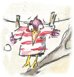 Alles! Den gestressten Vogel, die fransende Feder, das obszöne Fledergetier, den johlenden Franz, den geklammerten Sebi, den ängstlichen Nikolaus, den brennenden Schnabel,, den festlichen Wickler und das war sicher noch nicht die ganze Geschicht.