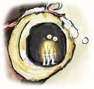 ziemlich fett. Drinnen liegen auch recht dick, drei runde Eier, jedes bedeckt mit einer Zipfelmütze.