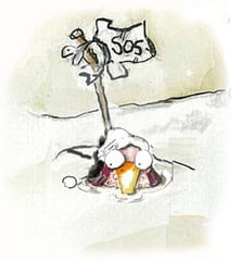 Ja, der Arme, der sitzt tief im Schnee, träumt von einer Wärmeflasche