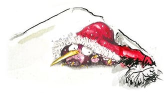 Heute ein wenig verwirrt, irrt er der alte Sack durch den Schnee,